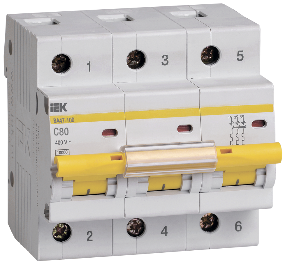 Автоматический выключатель ВА47-100 3Р 80А 10кА характеристика С IEK