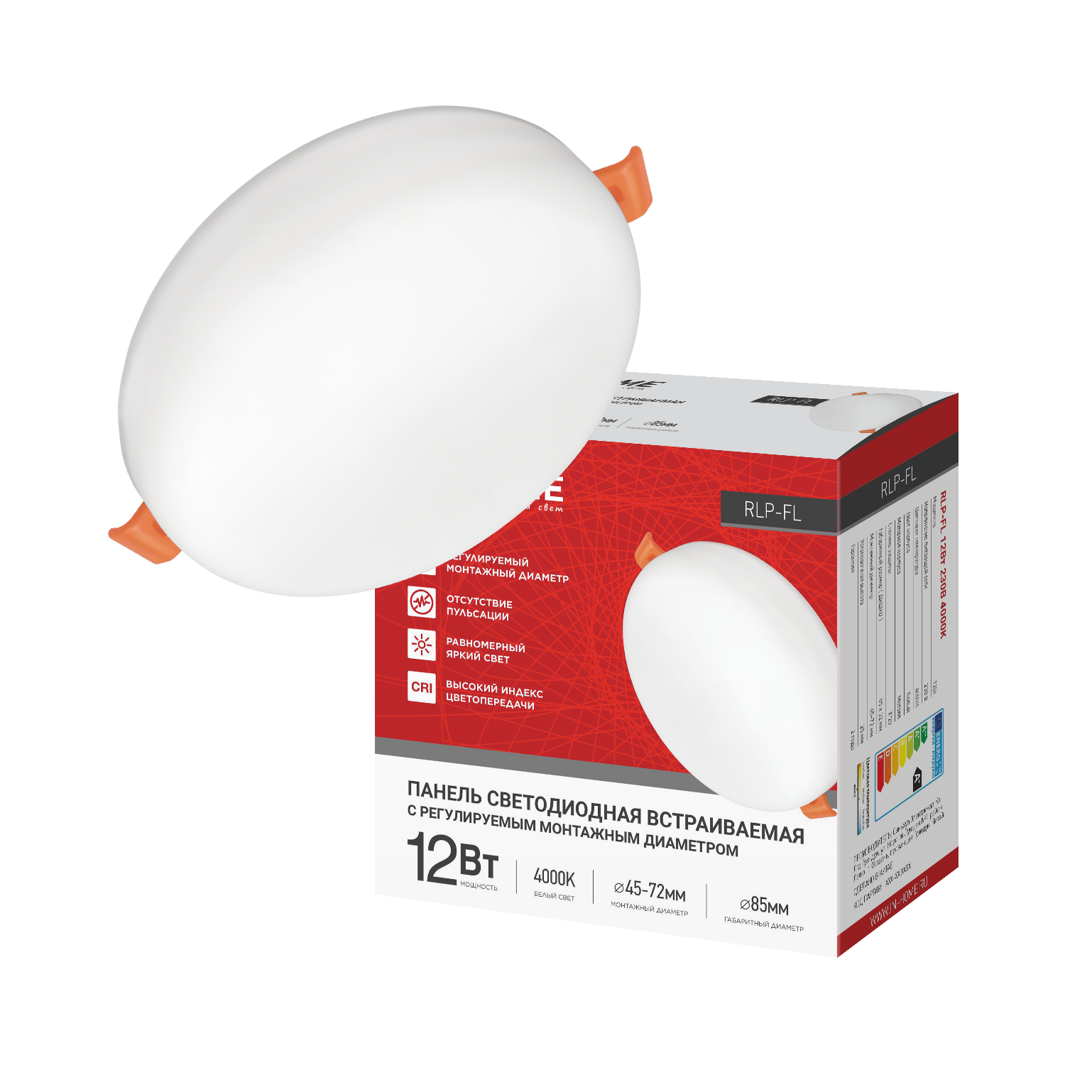 Панель светодиодная встраиваемая безрам RLP-FL 12Вт 230В 4000К 1080Лм 85мм с рег. монтажом 45-72мм белая IP20 IN HOME