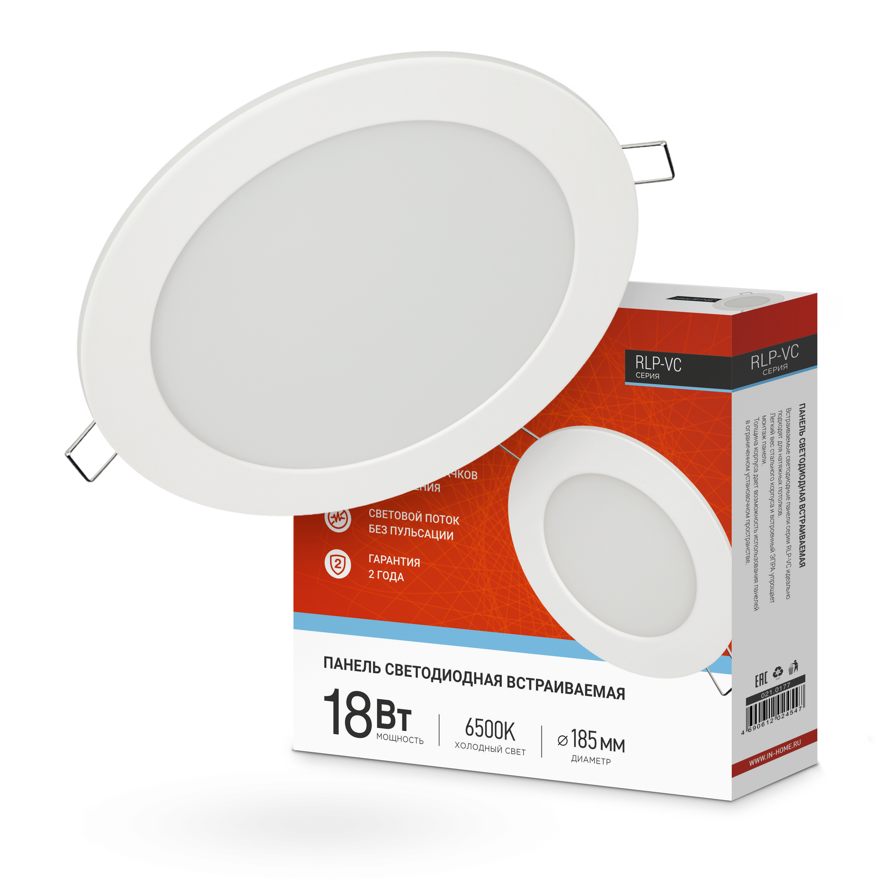 Панель светодиодная встраиваемая круглая RLP-VC 18Вт 230В 6500К 1440Лм 185мм белая IP40 IN HOME