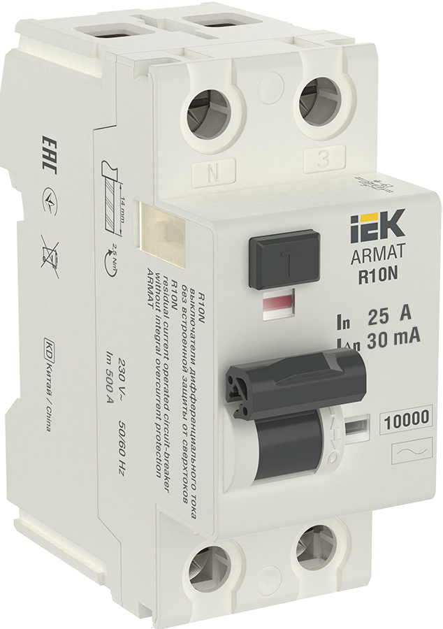ARMAT Выключатель дифференциального тока R10N 2P 25А 30мА тип AC IEK