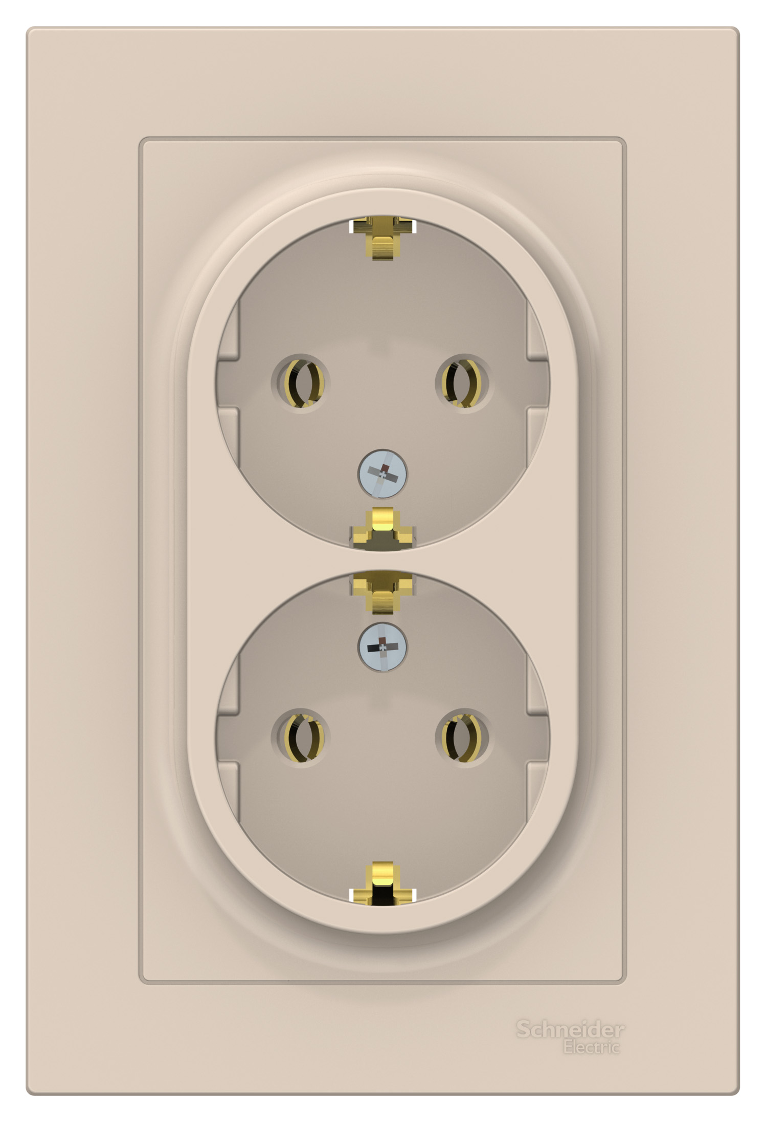 Розетка двойная AtlasDesign SE с заземлением бежевая в сборе