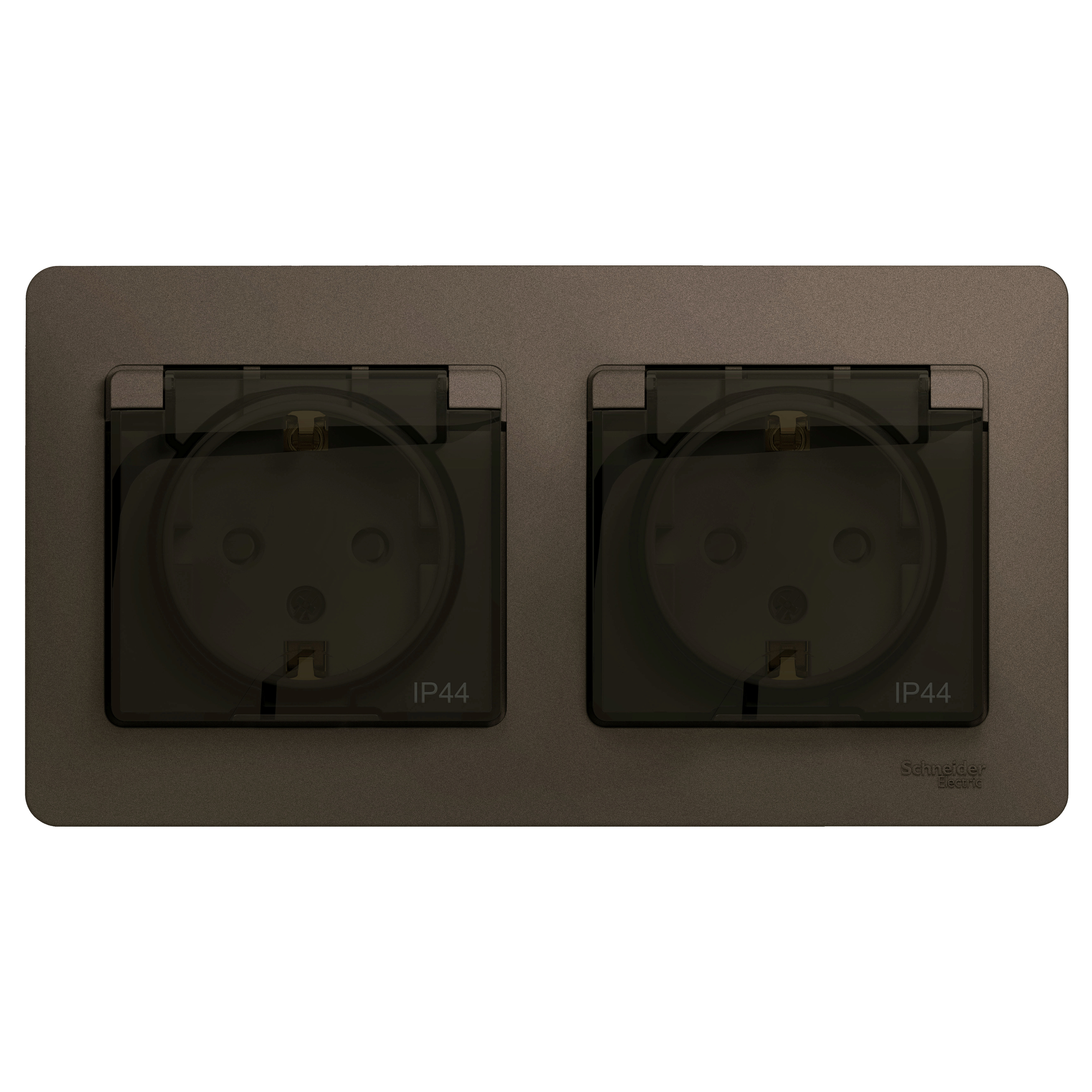 Розетка двойная Glossa SE IP44 с заземлением со шторками шоколад в сборе