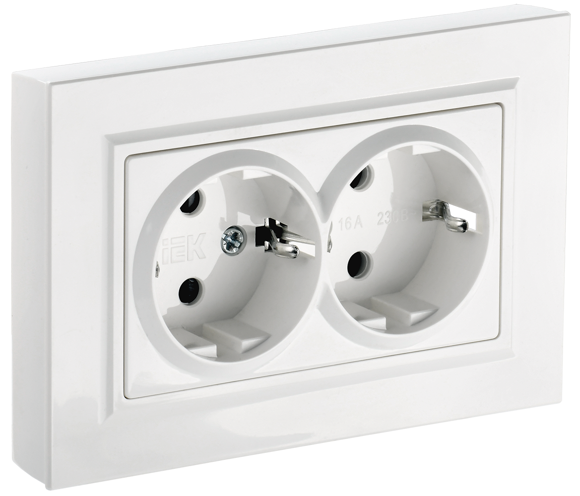 Розетка двойная с з/к 16А BRITE IEK белая в сборе