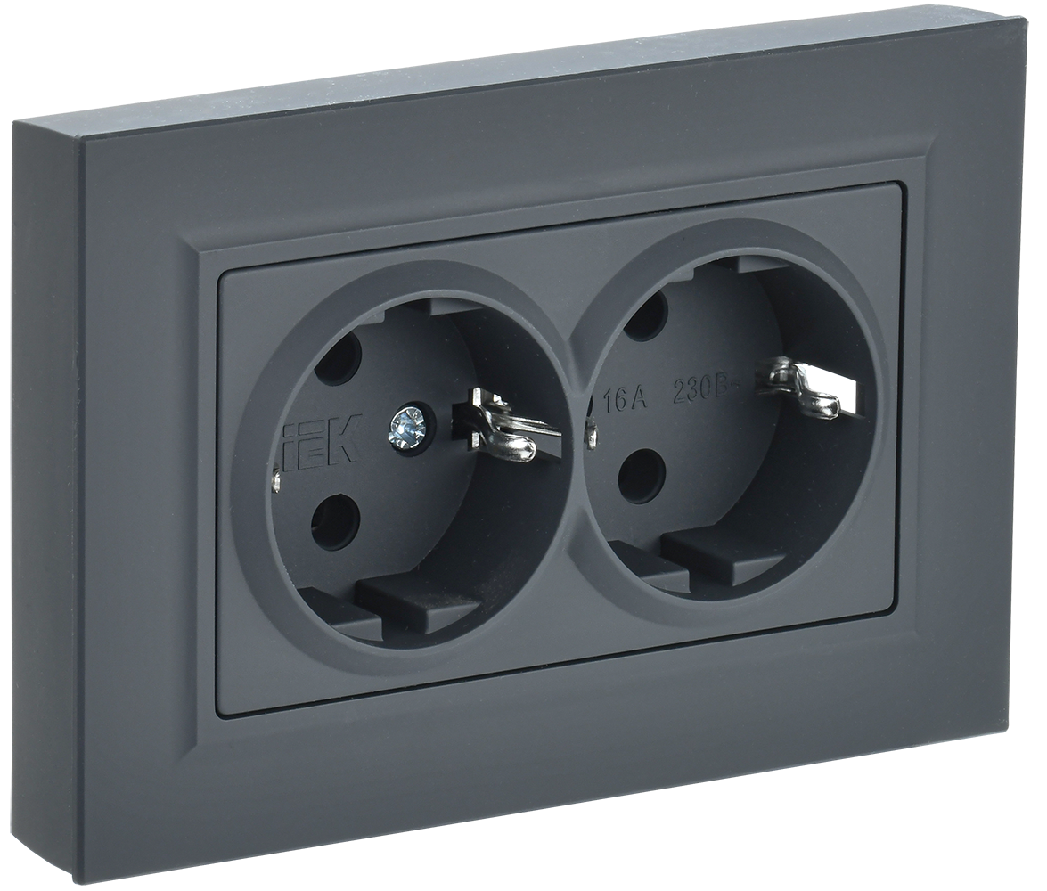 Розетка двойная с з/к 16А BRITE IEK графит в сборе