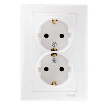 Розетка двойная SEDNA Schneider Electric с заземлением белая