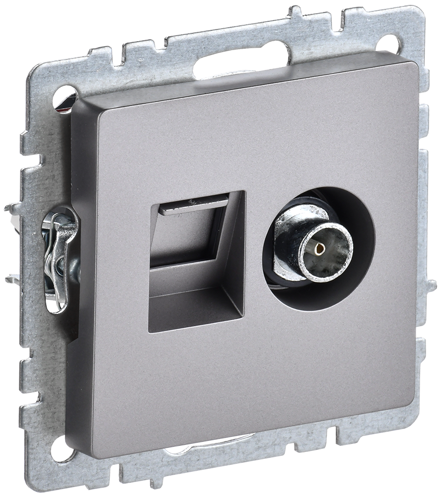 Розетка двойная телевизионная+RJ45 кат.5E BRITE IEK сталь