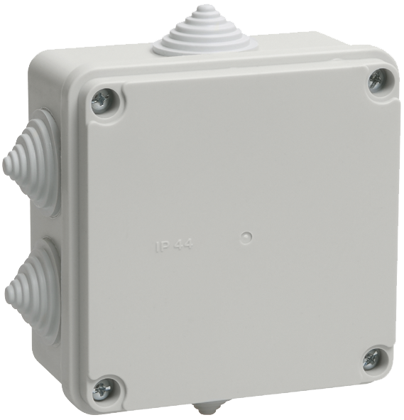 Коробка КМ41233 распаячная для открытой проводки 100х100х50 мм IP44 (RAL7035, 6 гермовводов)