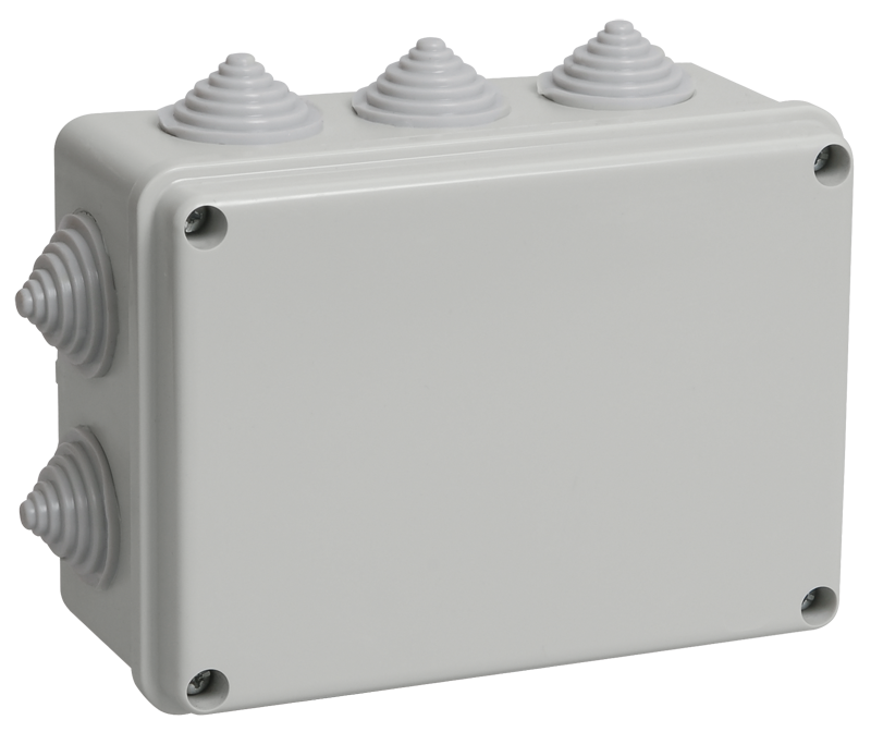 Коробка КМ41241 распаячная для открытой проводки 150х110х70 мм IP44 (RAL7035, 10 гермовводов)