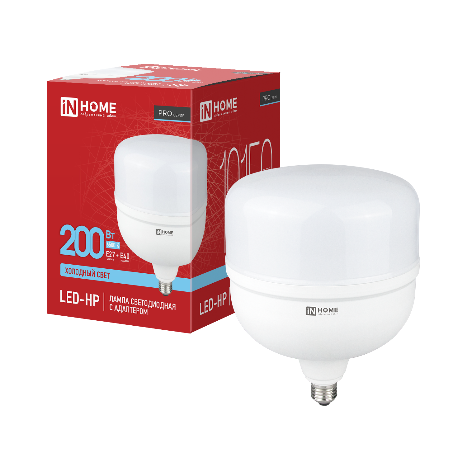 Лампа светодиодная LED-HP-PRO 200Вт 230В E27 с адаптером Е40 6500К 19150Лм IN HOME