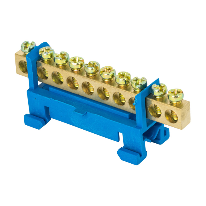 Шина "0" N (6х9мм) 10 отверстий латунь синий изолятор тип "Стойка" на DIN-рейку EKF PROxima