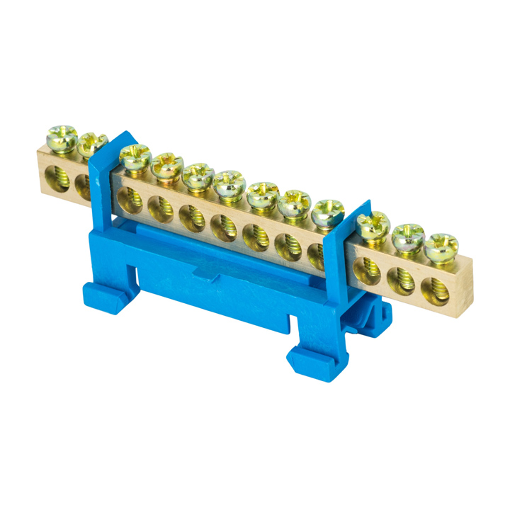 Шина "0" N (6х9мм) 12 отверстий латунь синий изолятор тип "Стойка" на DIN-рейку EKF PROxima