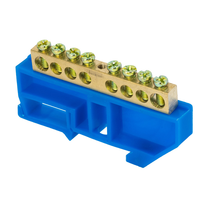 Шина "0" N (8х12мм) 8 отверстий латунь синий изолятор на DIN-рейку EKF PROxima