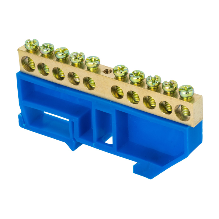 Шина EKF "N"нулевая 6х9мм 10 отверстий синий изолятор