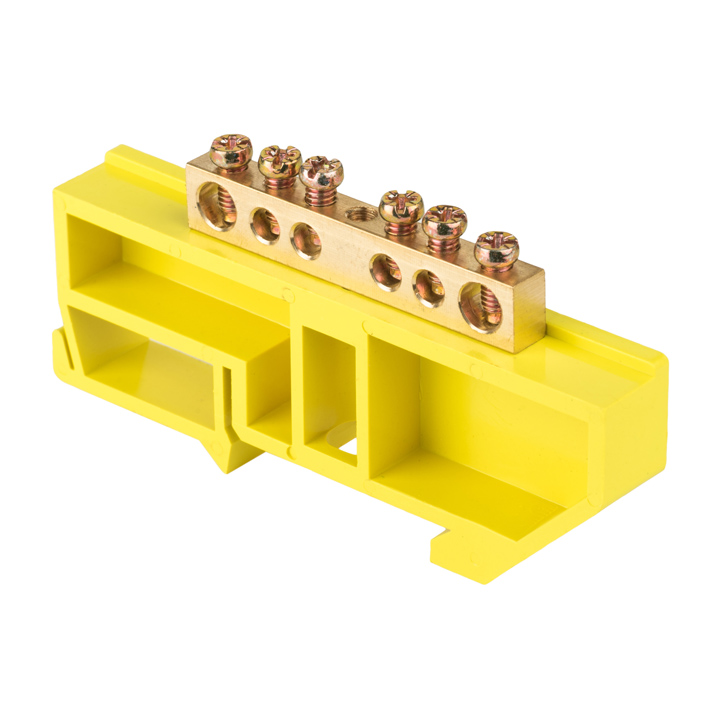 Шина "N" нулевая 6х9мм 6 отверстий желтый изолятор на DIN-рейку EKF