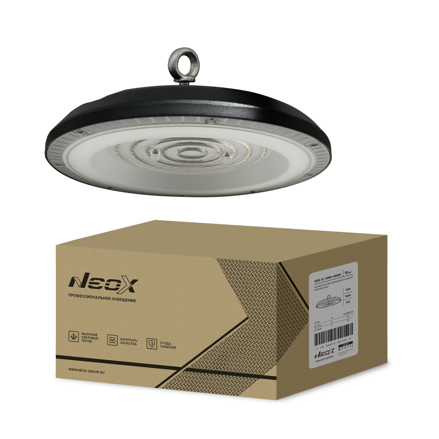 Светодиодный складской линзованный светильник NEOX UHB-2L 150Вт — профессиональное решение для освещения промышленных объектов, складов и помещений с высокими потолками.