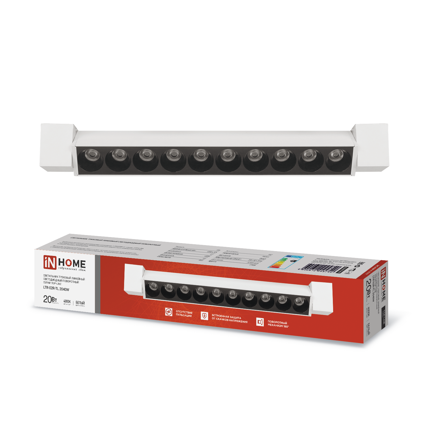Светильник трековый линейный светодиодный поворотный LTR-02R-TL 20Вт 4000К 2000Лм 345мм IP40 24 градуса белый серии TOP-LINE IN HOME