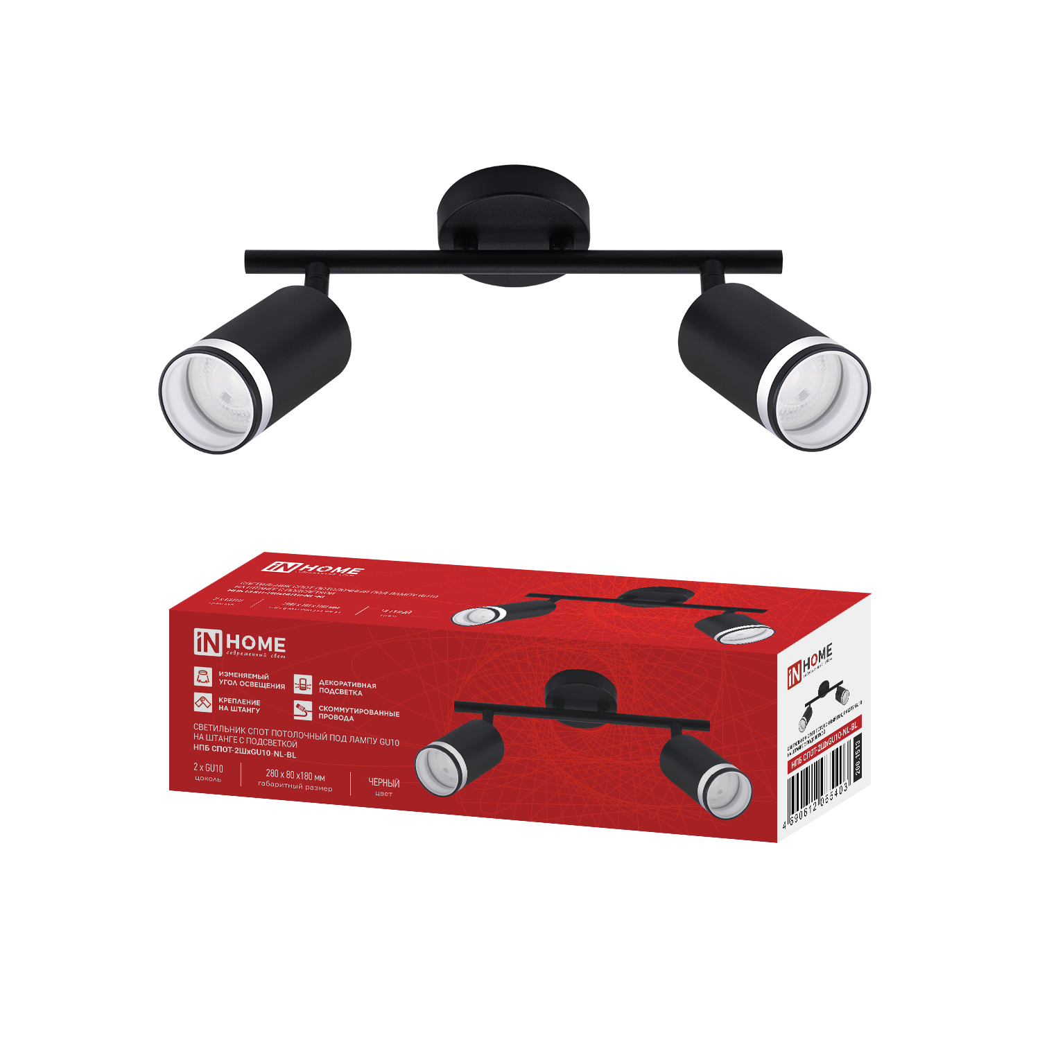 Светильник потолочный НПБ СПОТ-4RxGU10-AR-BL под GU10 с круглой базой черный IN HOME в Хабаровске