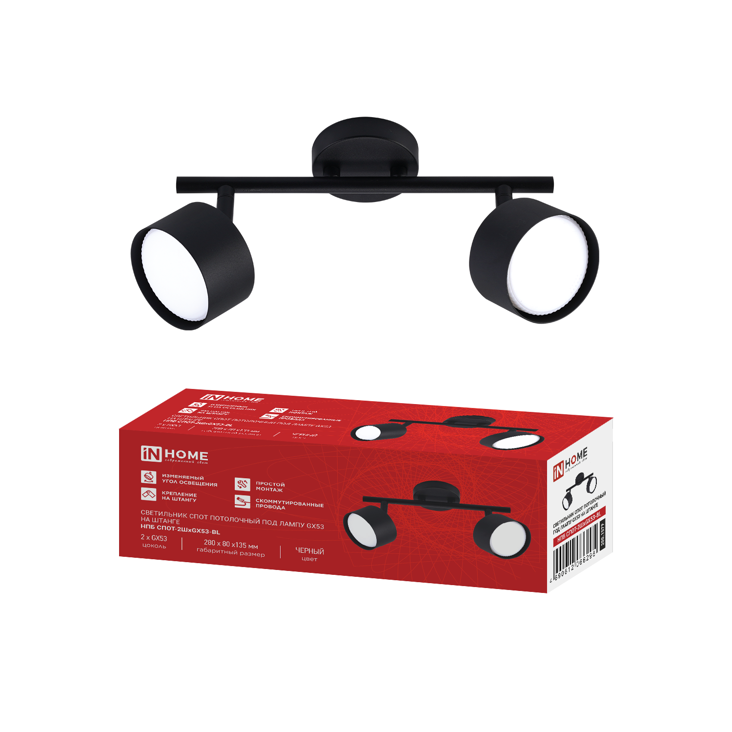 Светильник потолочный НПБ-СПОТ-GX53 2хSBM-NL-WH с подсветкой 220x80x90мм белый IN HOME