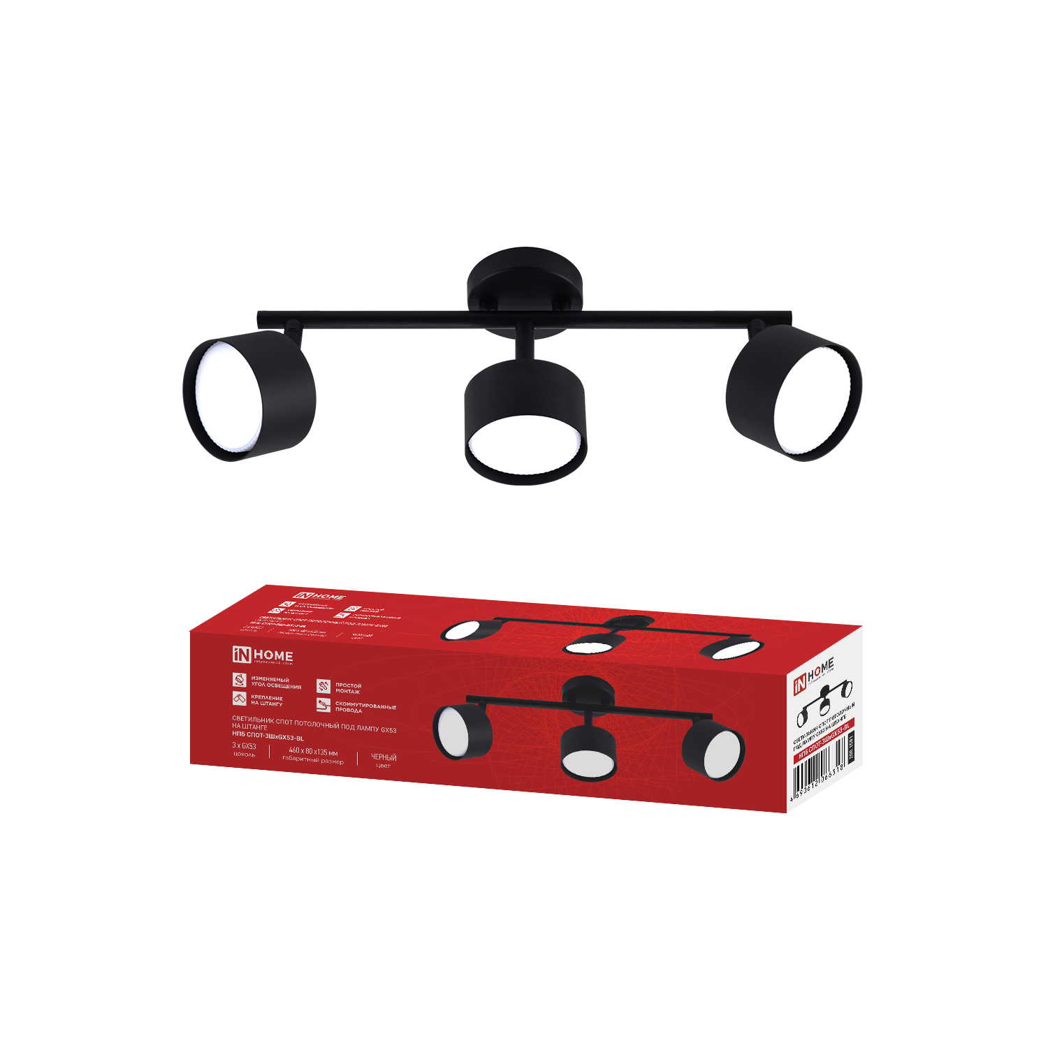 Светильник потолочный НПБ-ЦИЛИНДР-GX53 SBM-BL 80х55мм черный IN HOME в Хабаровске