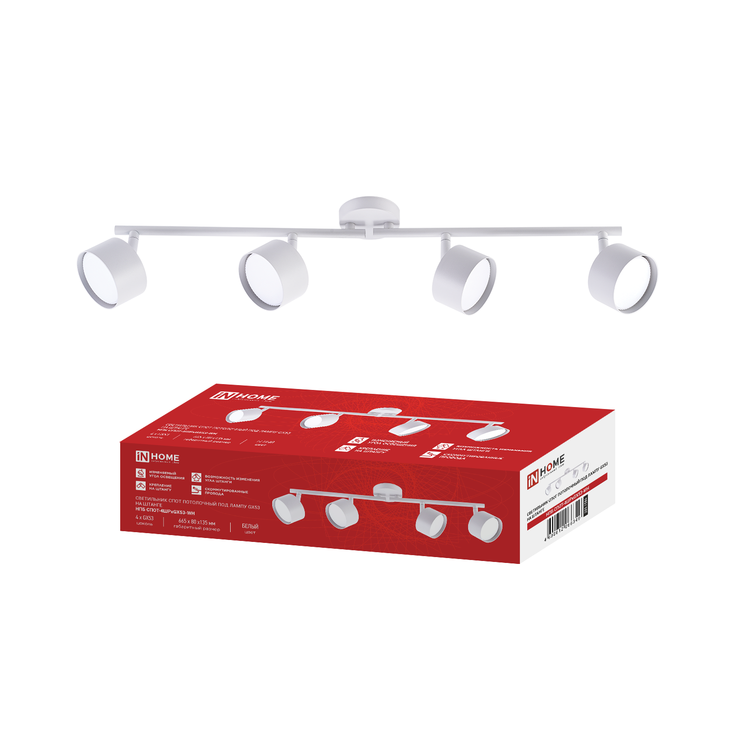 Светильник потолочный НПБ СПОТ-4xGU10-AR-WH под GU10 595x55x135мм белый IN HOME в Хабаровске