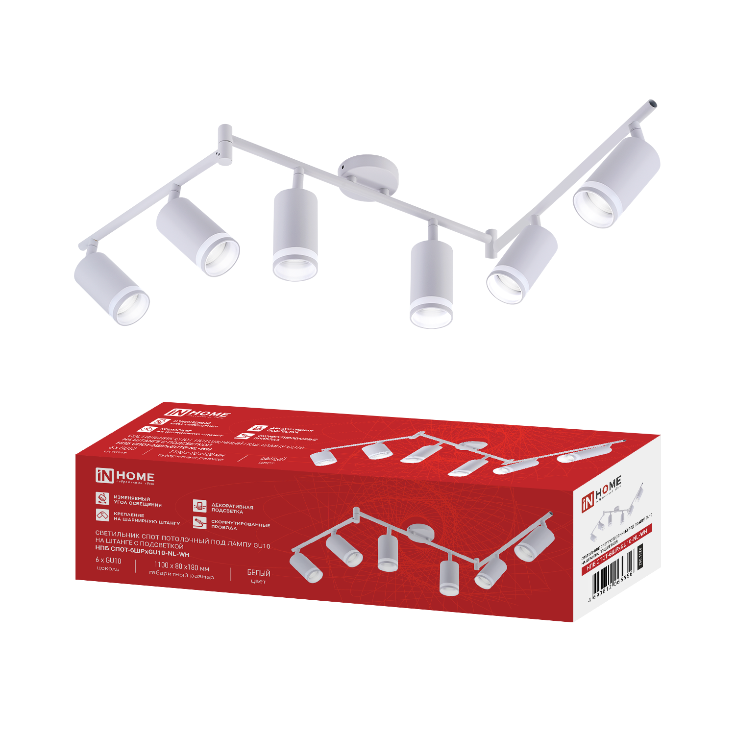 Светильник потолочный НПБ СПОТ-2xGU10-AR-WH под лампу GU10 260х55х135мм линейный белый IN HOME в Хабаровске