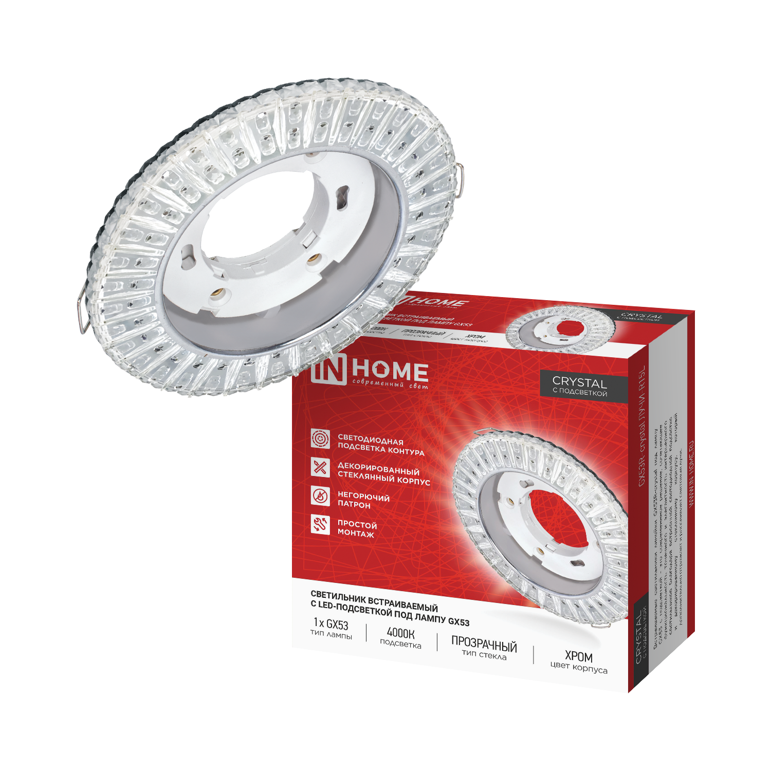 Светильник встраиваемый GX53R-crystal R32L-CC с подсветкой 4К под GX53 Прозрачный/Хром IN HOME в Хабаровске