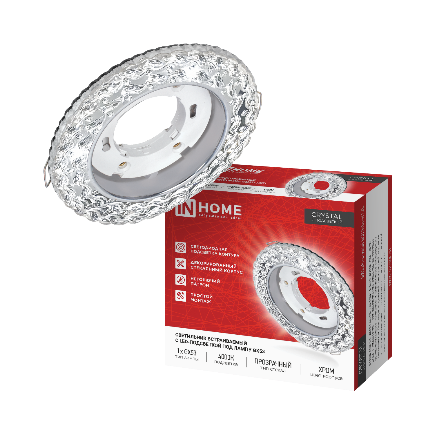 Светильник встраиваемый GX53R-crystal R12L с подсветкой 4К под лампу GX53 Прозрачный/Хром IN HOME