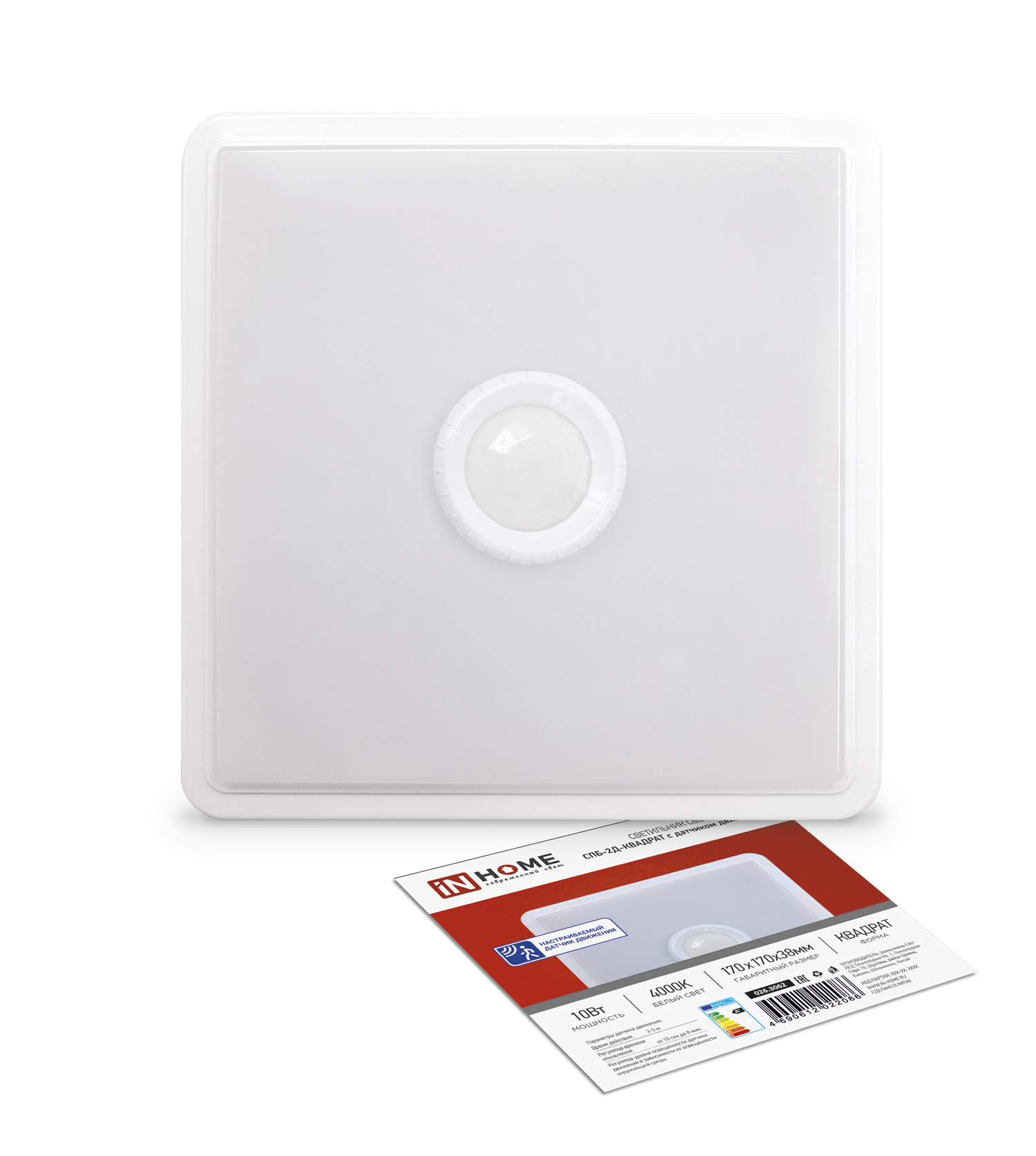 Светодиодный светильник IN HOME СПБ-2Д-КВАДРАТ 10Вт с датчиком движения — энергоэффективное решение для автоматического освещения жилых, коммерческих и общественных помещений.