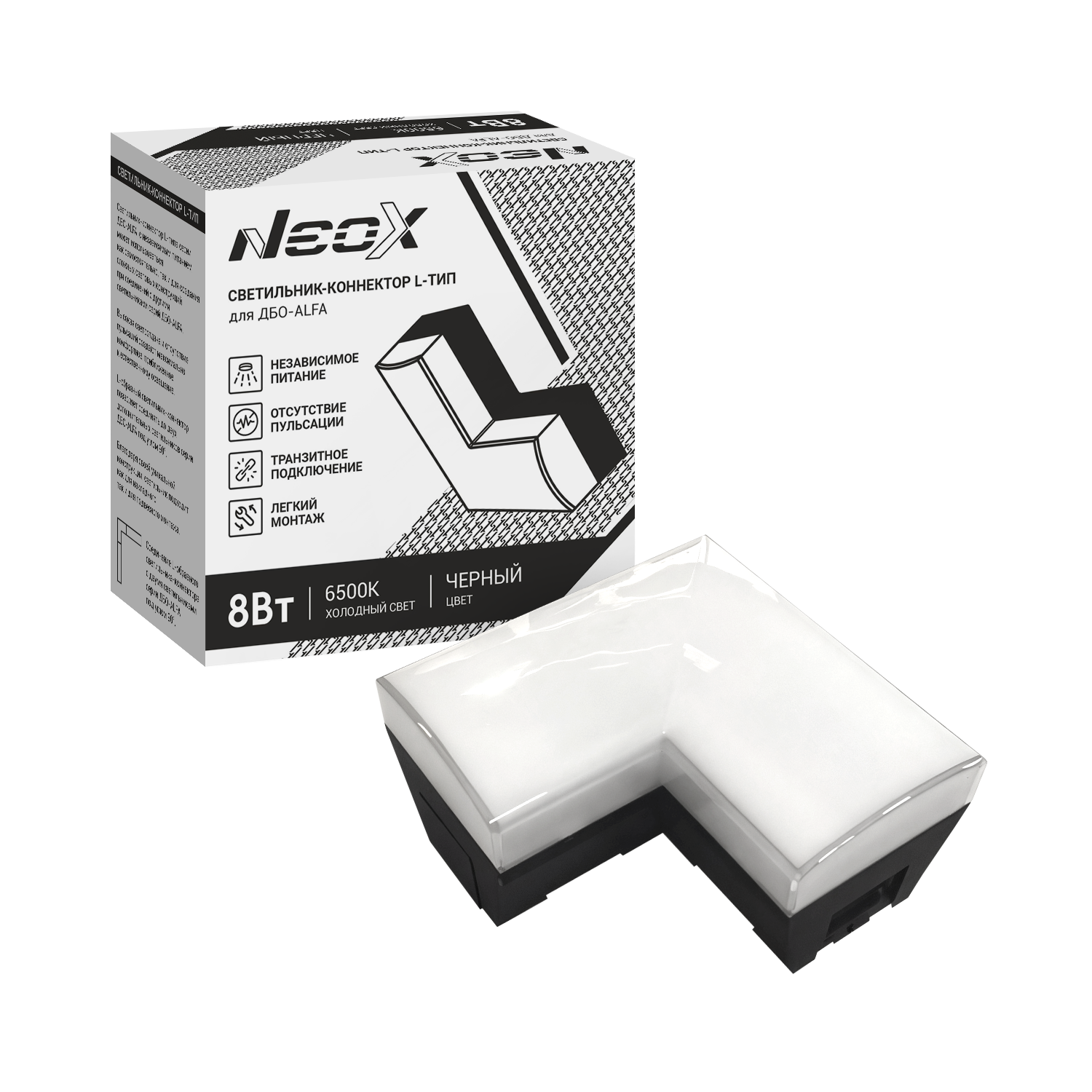 Светильник-коннектор L-тип для ДБО-ALFA 8Вт 230В 4000К черный IP40 NEOX в Хабаровске