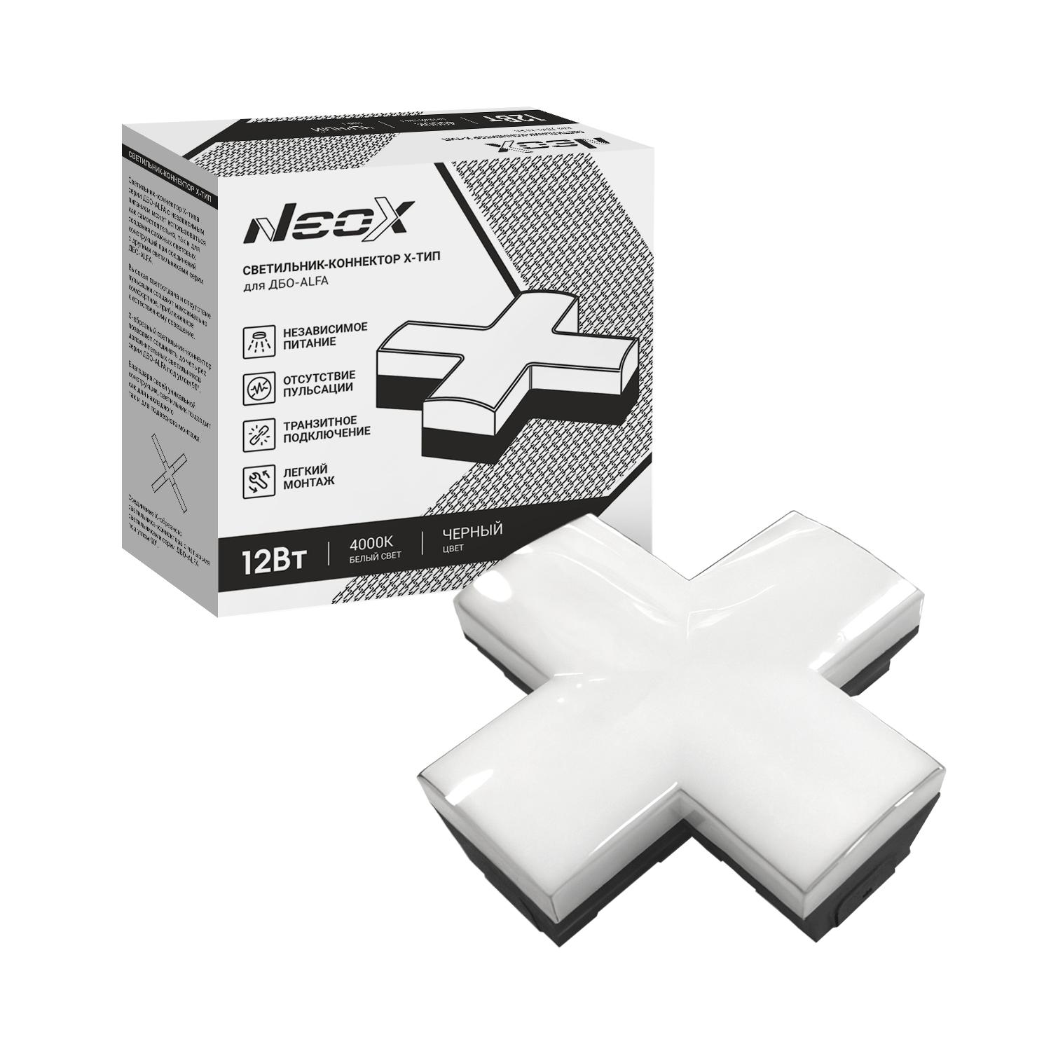 Светильник-коннектор L-тип для ДБО-ALFA 8Вт 230В 6500К черный IP40 NEOX