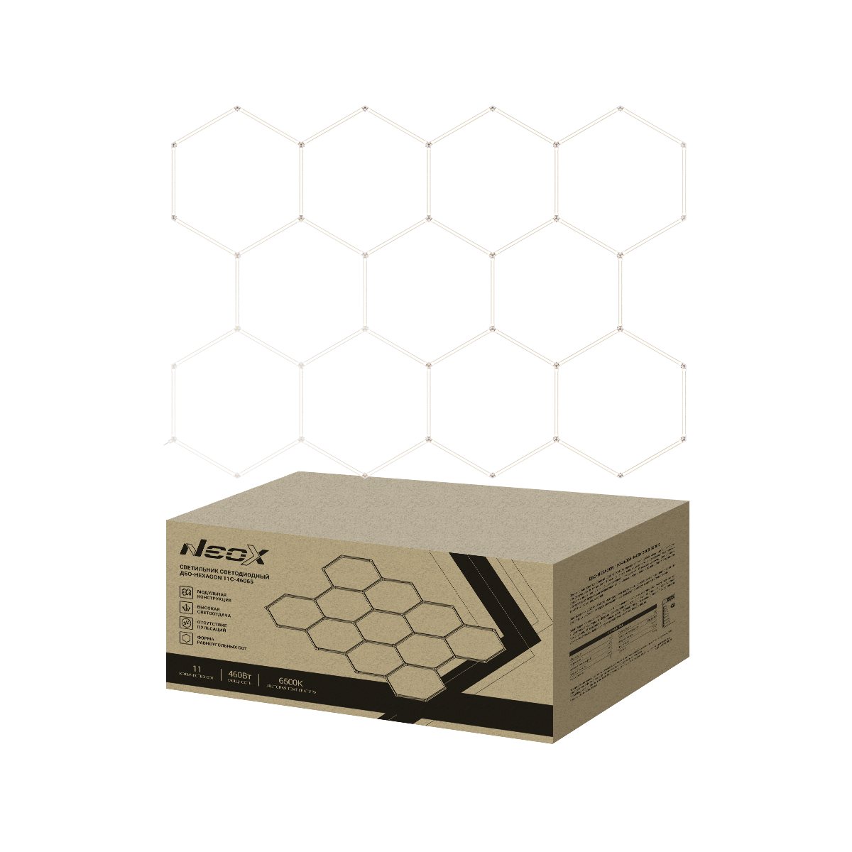 Светильник светодиодный ДБО-HEXAGON 3С-15065 150Вт 230В 6500К 3 соты 0.5м шнур с вилкой 1617x1611мм NEOX в Хабаровске