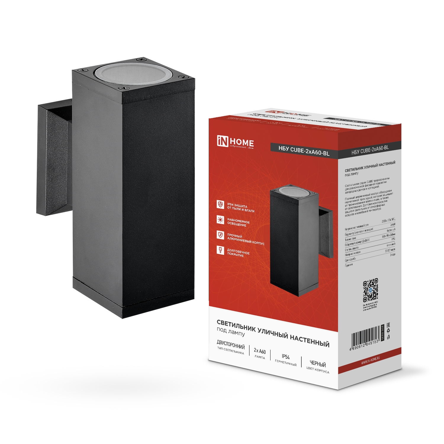 Светильник CUBE-2хA60-BL IN HOME — практичное и стильное решение для создания современной фасадной подсветки и архитектурного освещения зданий.