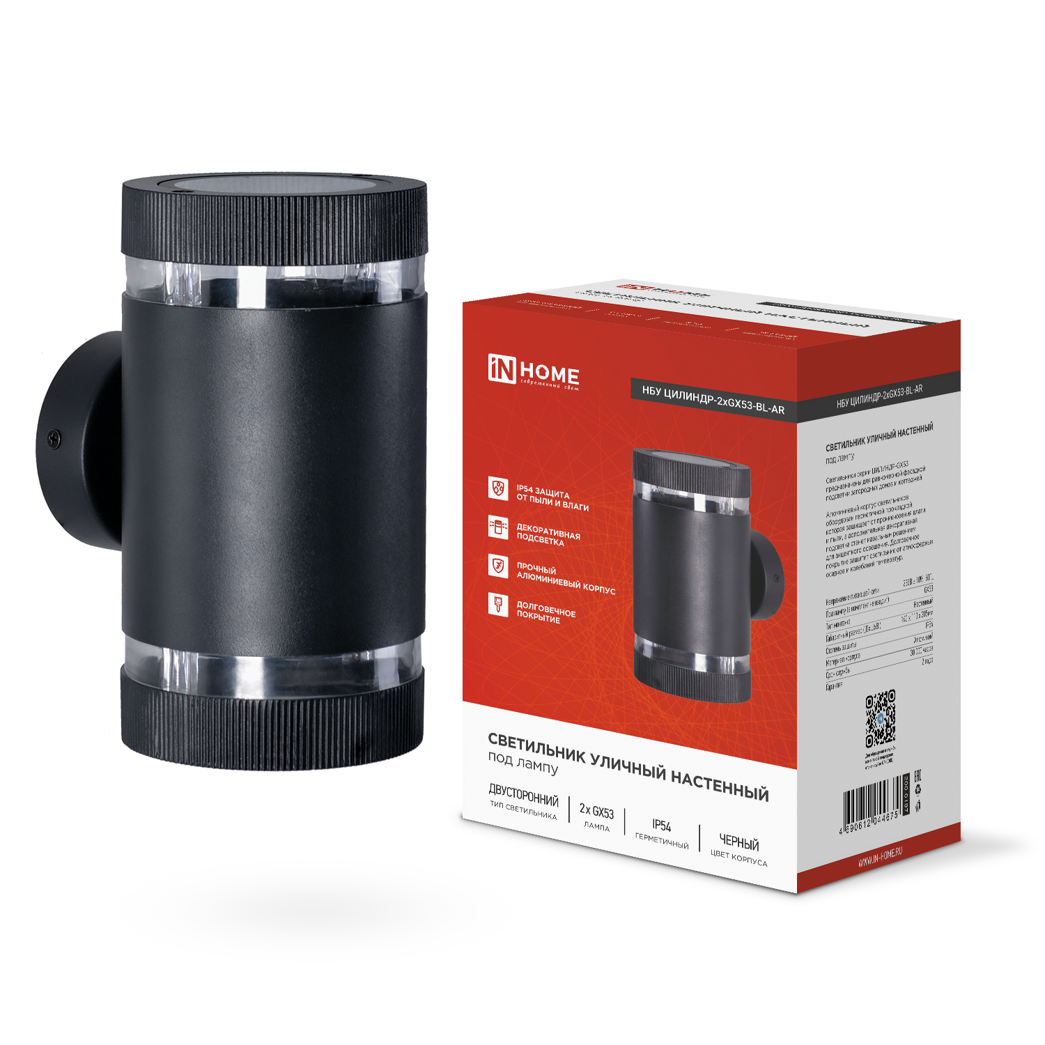 Светильник ЦИЛИНДР-2xGX53-BL-AR IN HOME — надежное решение для создания декоративного и функционального фасадного освещения.